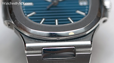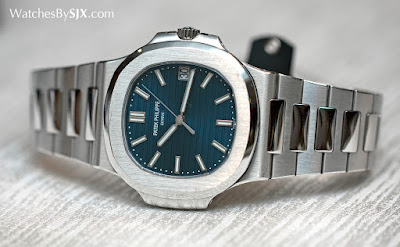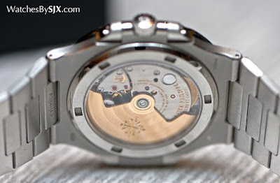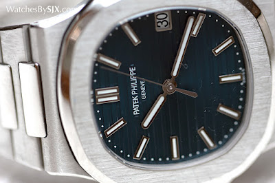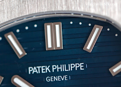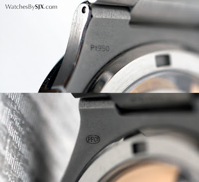 Am interessantesten ist das Logo um 12 Uhr. Während das Stahlmodell die Beschriftung auf der horizontalen Riffelung gedruckt hat, verlässt die Guilloche des Platins Nautilus eine flache Aussparung, um das Logo aufzunehmen. Ein kleines Detail, aber eines, das den zusätzlichen Aufwand veranschaulicht, der in die Uhr geht, etwas, das ganz passend ist, wie außerordentlich teuer es ist.