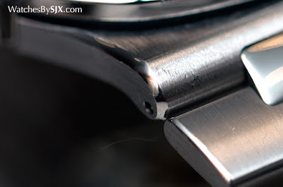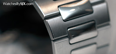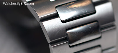 Die polierten Abschrägungen an den Rändern des Koffers und der Armbandglieder sind auf dem Platin stärker ausgeprägt als auf dem Stahl, was ihn attraktiver macht.