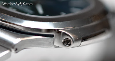Wie alle Platin Patek Philippe Uhren, die 5711 / 1P hat einen kleinen Diamanten in die Lünette gesetzt um sechs Uhr. Aber jenseits des winzigen Edelsteins sind auch der Fall und das Armband subtil verschieden.